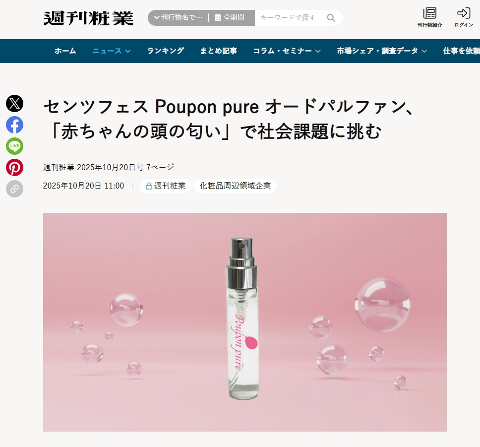 専門誌で紹介「週刊粧業」でプポンピュア香水が掲載されました センツフェス、「赤ちゃんの頭の匂い」で社会課題に挑む